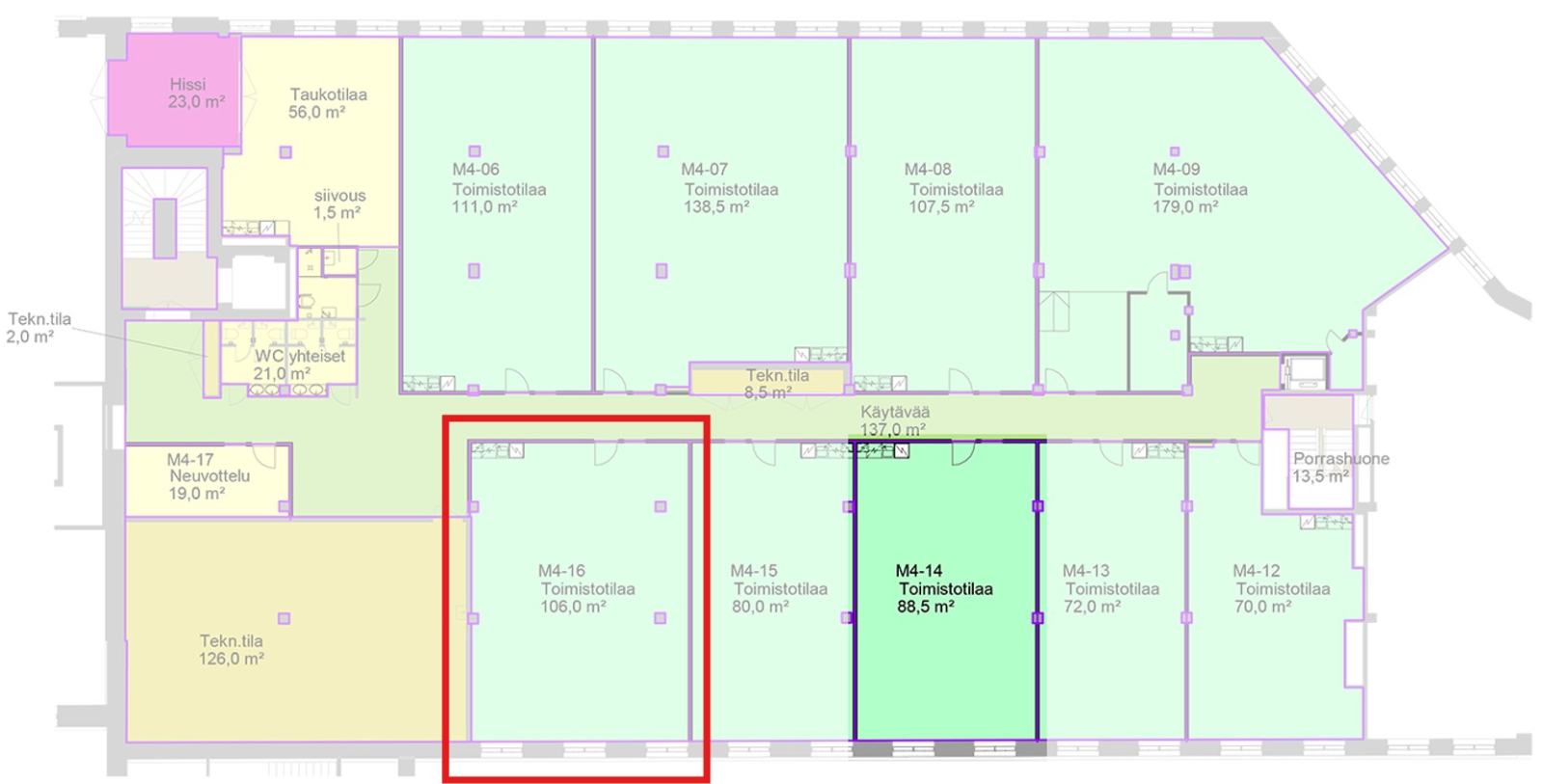 Vuokrataan Tampereen keskustasta Finlaysonin alueelta neljännen kerroksen 106 m² toimistotila.