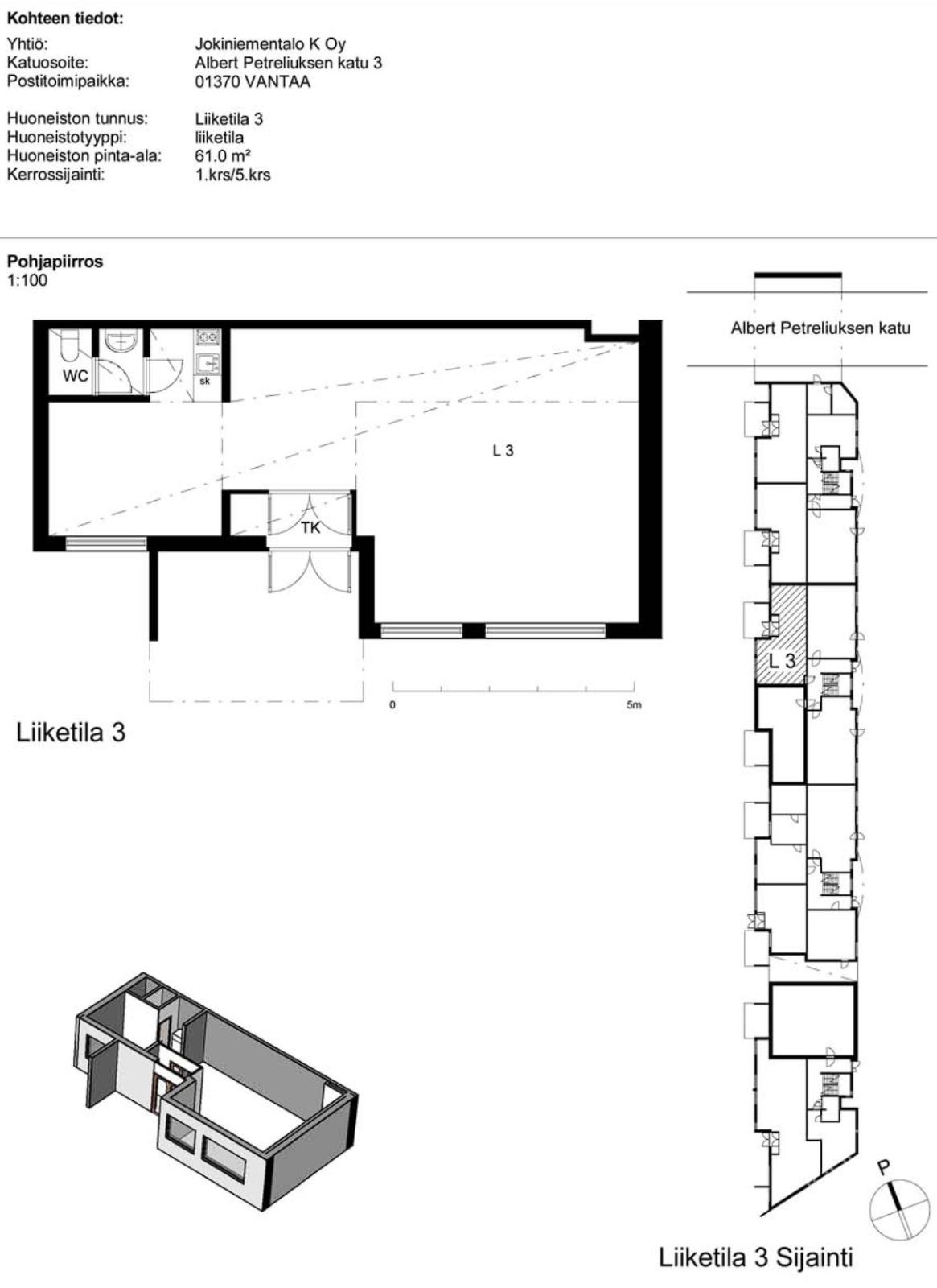 Vuokrataan heti vapaa katutason siisti 60 m² liiketila LT3 Vantaan Jokiniemestä. Tila on avotilaa varustettuna minikeittiöllä ja wc- tilalla. Kohteen sijainti on loistava, ainoastaan 500 metrin päässä Tikkurilan juna-asemalta.