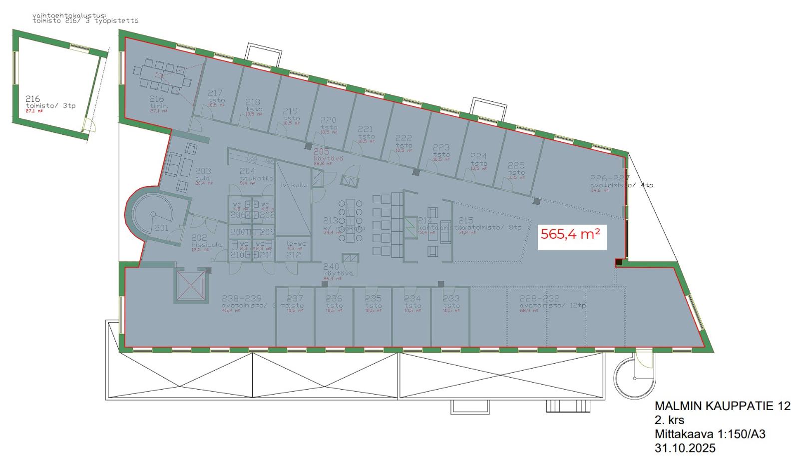 Vuokrataan siisti toisen kerroksen 565,4 m² toimistotila Malmin ytimestä. Tilassa on koneellinen ilmanvaihto, sekä jäähdytys huonekohtaisilla säätömahdollisuuksilla. Tila on myös jaettavissa.