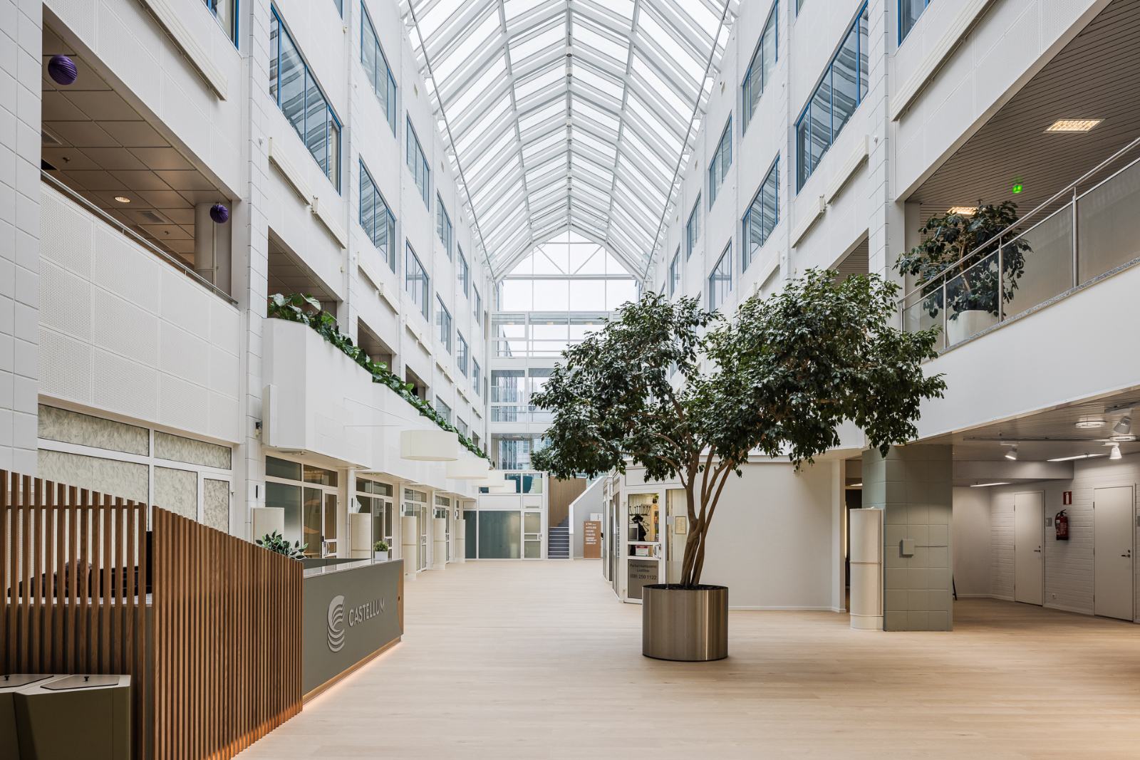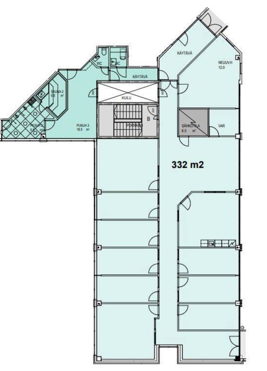 Vuokrataan ylimmän kerroksen jäähdytetty 332m² monitilatoimisto omalla saunalla! Tilassa on useita toimistohuoneita, avotilaa sekä keittiö.