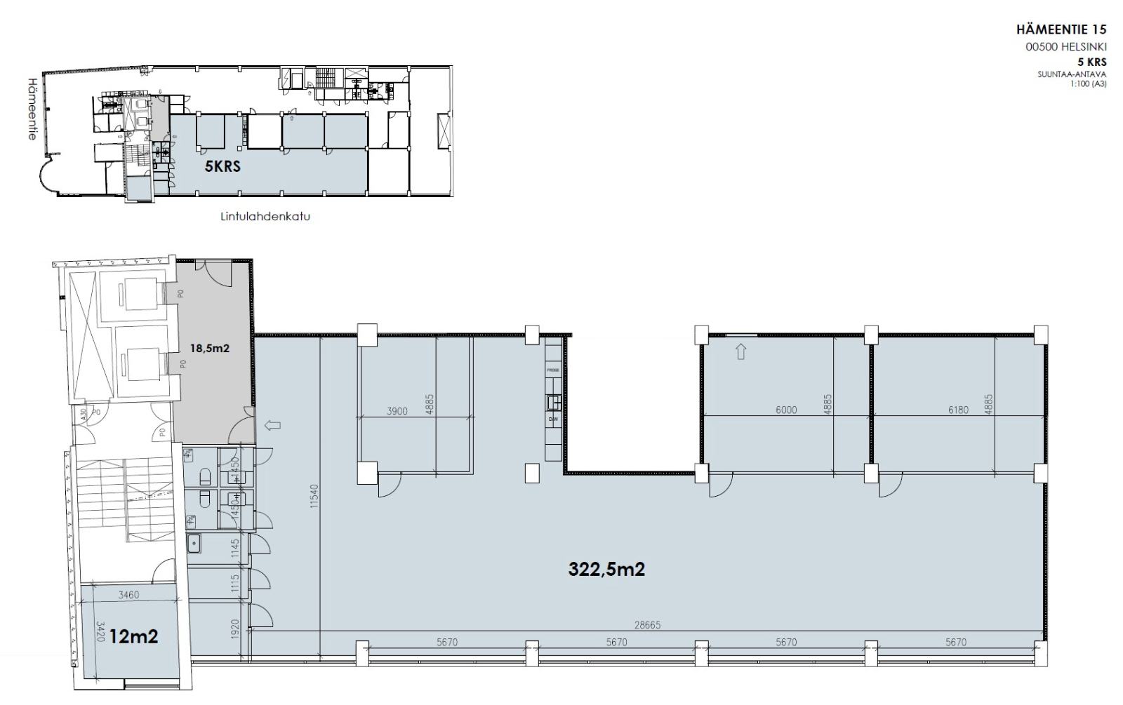 Vuokrataan viidennen kerroksen siisti, valoisa ja jäähdytetty 323 m² toimistotila Sörnäisista.
