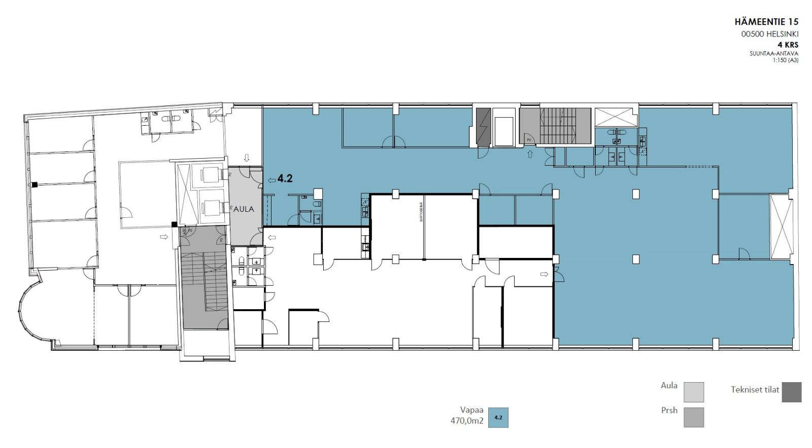 Vuokrataan neljännen kerroksen jäähdytetty 470 m² toimistotila Sörnäisista. Tila on monitilatoimisto, jossa on useita eri kokoisia huoneita.