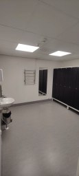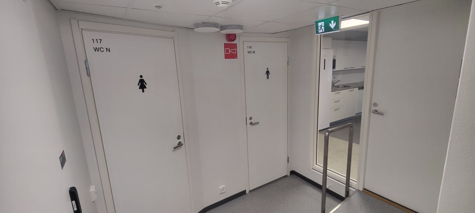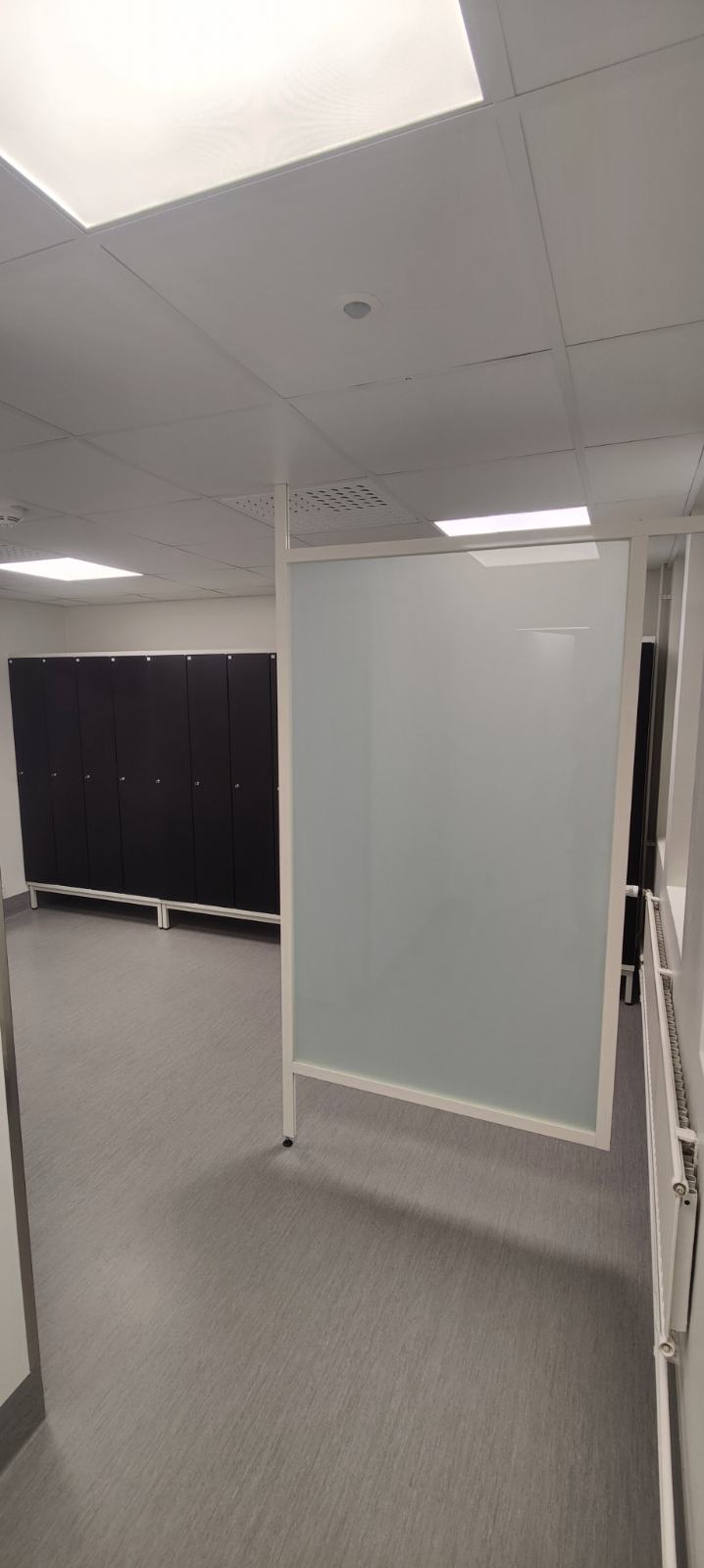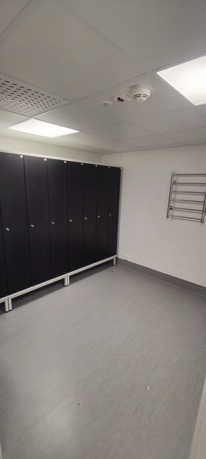 Miehille ja naisille omat pukuhuoneet suihkuilla, sekä lukittavat vaatesäilytyskaapit.