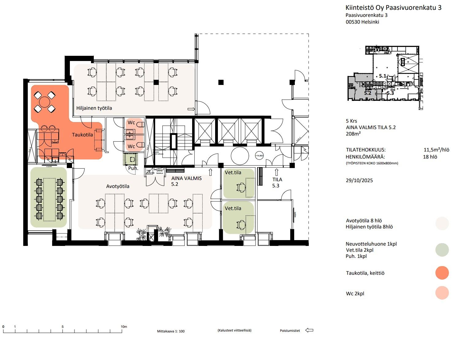 Vuokrataan Helsingin Hakaniemestä viidennen kerroksen 208 m² toimistotila.
