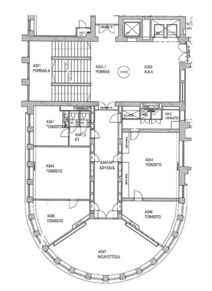 Vuokrataan Helsingin Sörnäisistä kolmannen kerroksen 213 m² toimistotila.