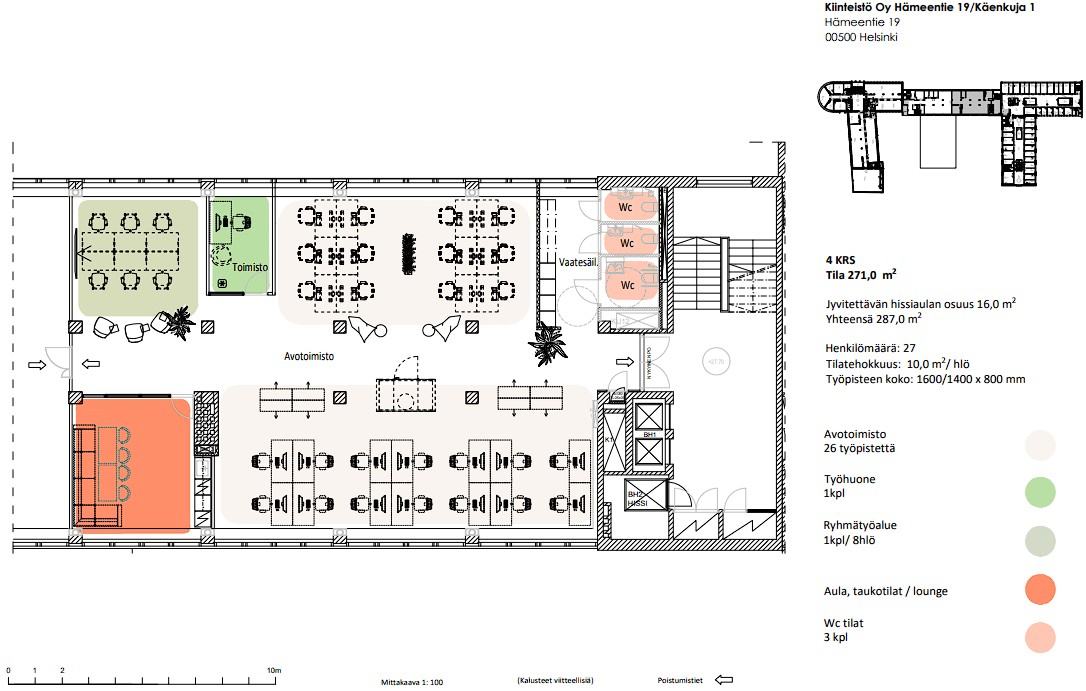 Vuokrataan Helsingin Sörnäisistä neljännen kerroksen 271 m² toimistotila.